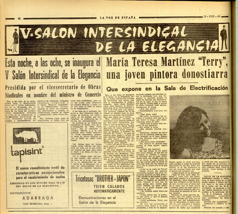 Elle a organisé plusieurs expositions dans des lieux emblématiques de la ville, dont les plus importantes sont le Salón de la Elegancia (1968) à l’hôtel de ville de Saint-Sébastien et Pintoras de Guipúzcoa (1970) au musée San Telmo.