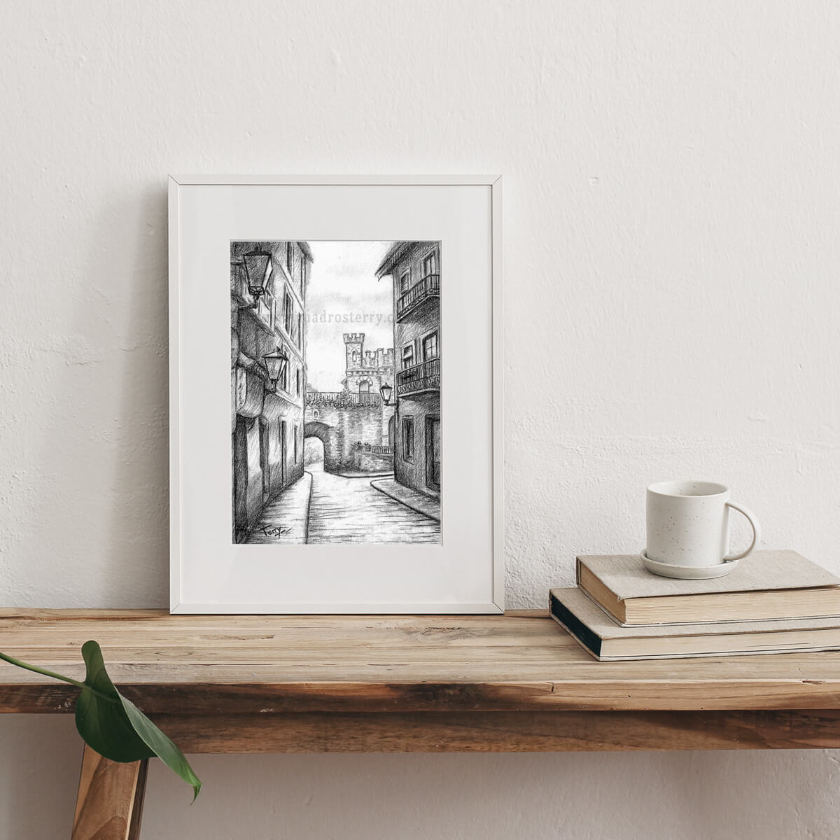 – Reproducción en cartulina de alta calidad, de cuadro original dibujado a carboncillo. Dibujo y proceso de impresión realizado en San Sebastián.
